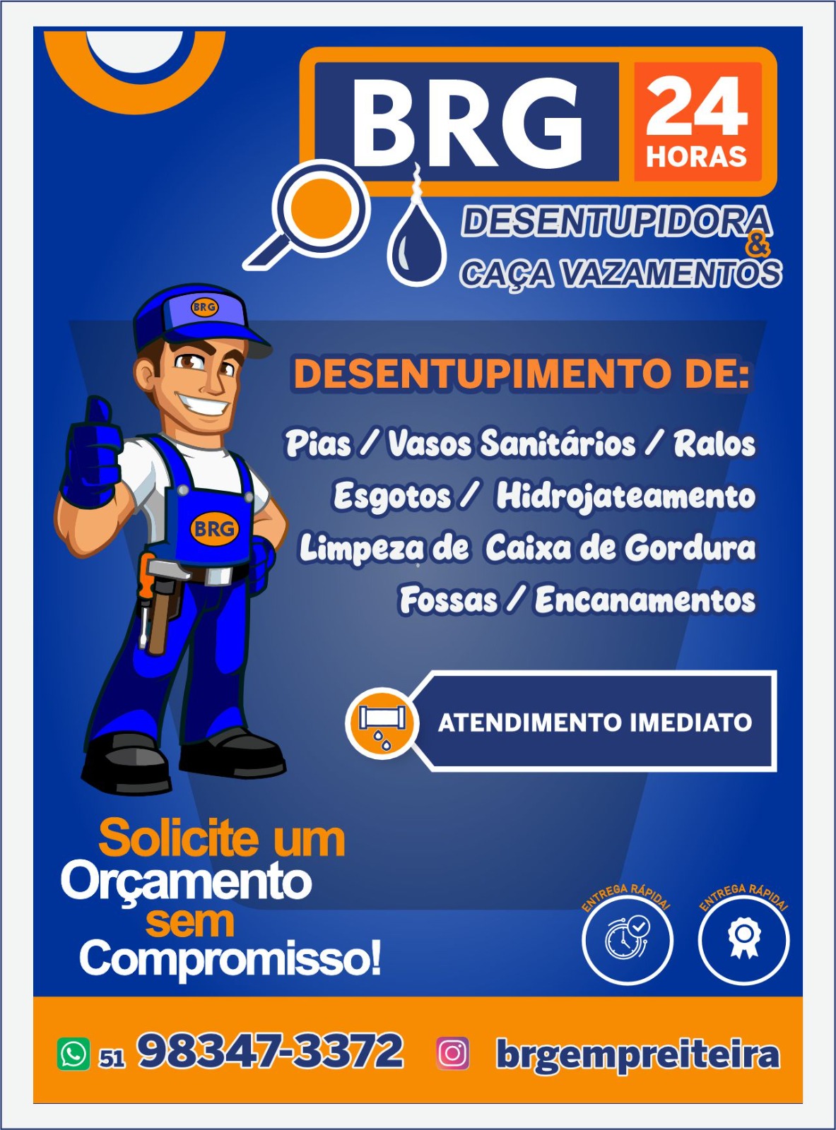 Desentupimento de pias, vasos sanitários, ralos, esgostos, hidrojateamento, caixas de gordura, fossas, encanamentos...